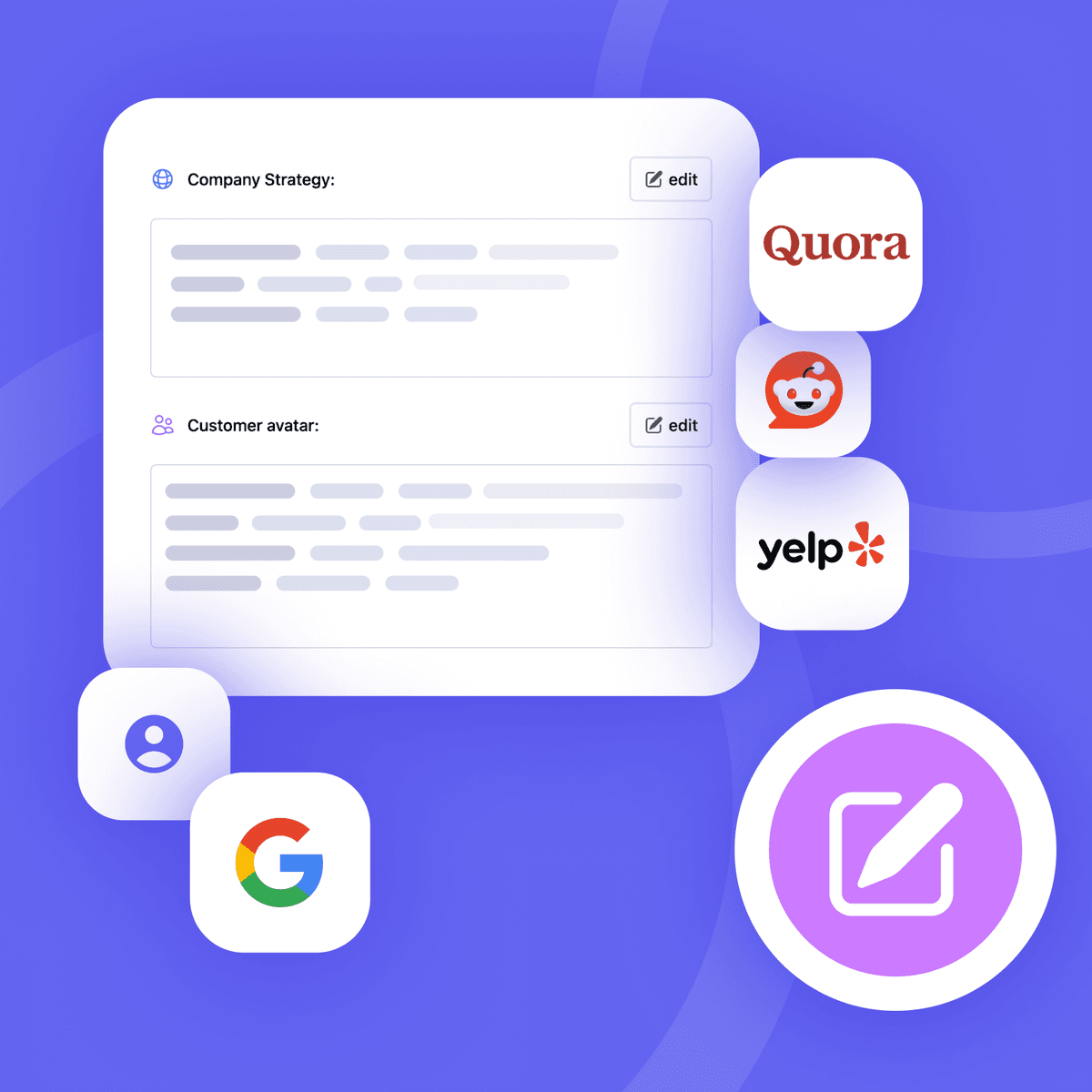 We pull in additional sources like Reddit, Yelp, and Quora. Our AI writer is fully trained on your website goals and has learned about all pages on your website. Adding this relevant data builds authority.