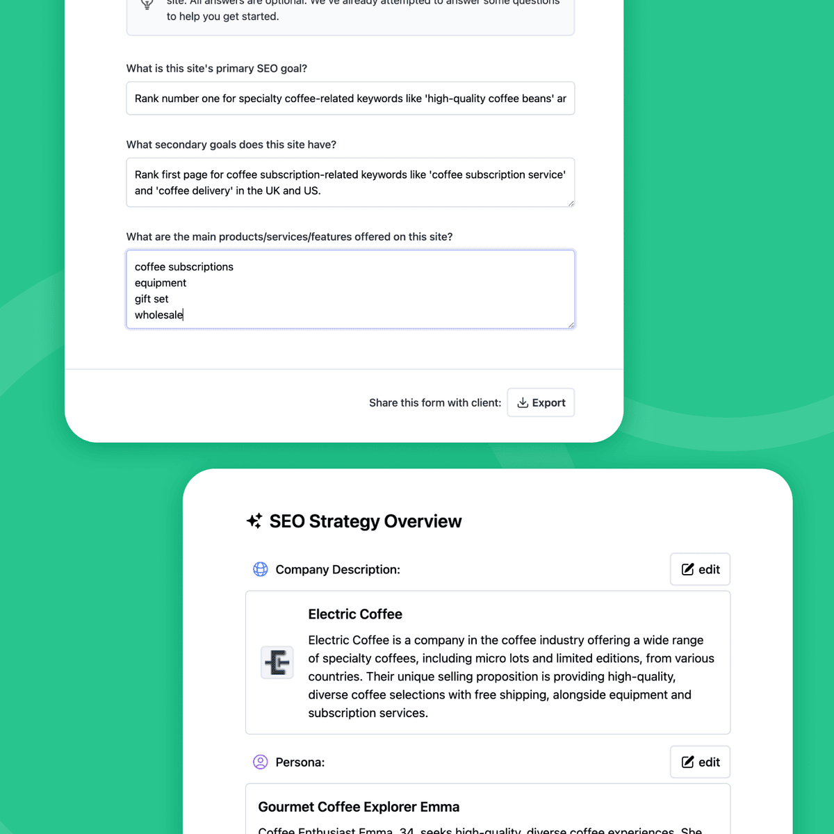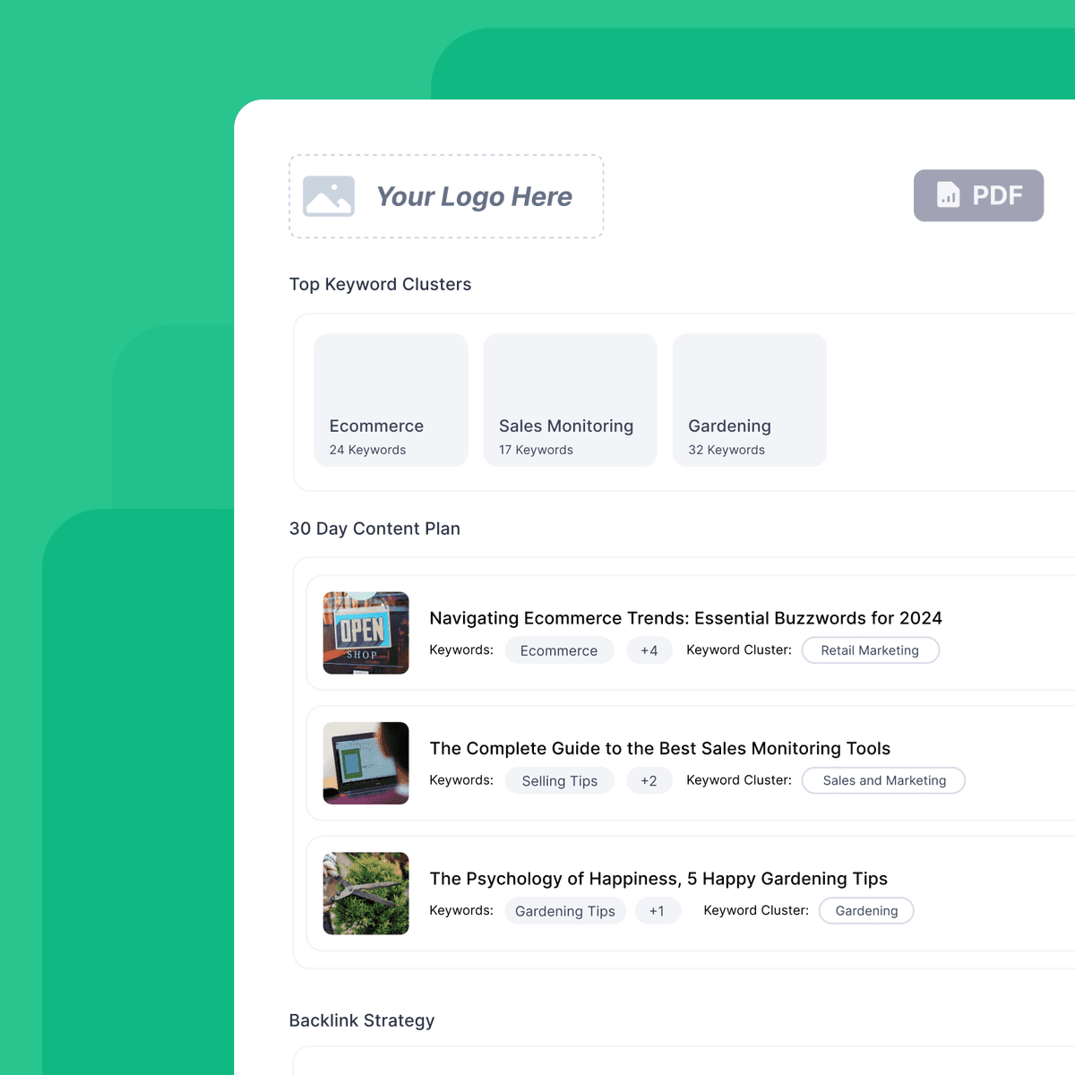 Turn a website URL into a comprehensive SEO strategy in minutes.